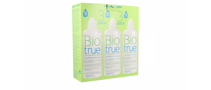La solution multifonctions Biotrue™ est indiquée pour le nettoyage quotidien, l’élimination des protéines, le rinçage, la conservation et la décontamination chimique des lentilles de contact souples à usage quotidien, y compris les lentilles de contact en silicone hydrogel, conformément aux recommandations de votre spécialiste.