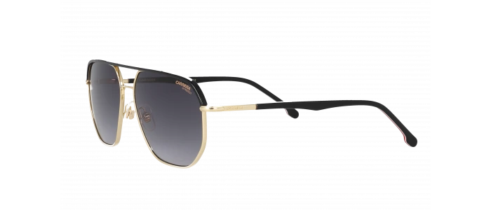 Découvrez le modèle de lunettes de soleil Carrera 304/S pour un style urbain. Monture dorée cerclée en métal, verres gris dégradés, et protection UV catégorie 3. Parfait pour les visages rectangulaires, carrés, ronds, ovales ou en triangle.