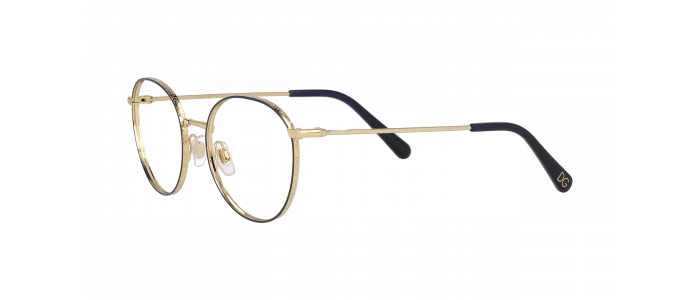 Craquez pour ce modèle d'optiques pour femme, et assurez-vous un style fashion en toute circonstance. La monture pantos, cerclée de métal doré, sublime le teint et met le visage en valeur, tandis que le liseré de bleu met l'accent sur le regard. On aime le raccord avec les manchons en plastique bleu nuit.