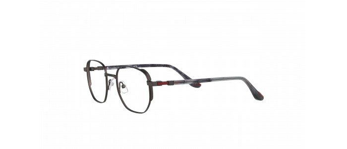 Si, de face, cette paire d'optiques pour homme affiche une monture carrée en métal gun plutôt classique, sur les côtés, on découvre un modèle vintage aux détails très travaillés. On adore alors les branches grises transparentes qui laissent deviner le squelette en métal rouge au niveau des charnières et qui va en s'affinant jusqu'aux manchons.