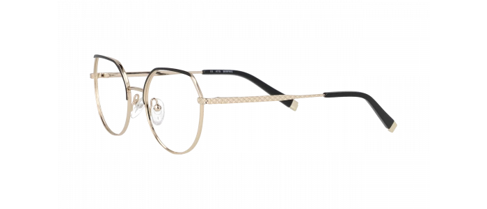 Craquez pour cette sublime paire de lunettes de vue pour femme et sa monture ronde très élégante. Vous succomberez à l’association du métal doré et du noir, qui offre à ces optiques des allures de bijou de luxe, et vous serez charmée par le haut du cerclage noir qui met en valeur le regard.