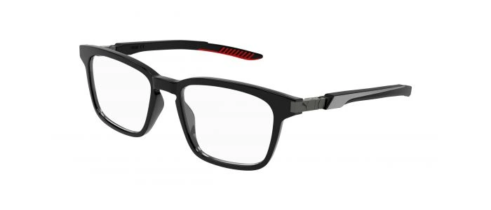 Découvrez les lunettes de vue Puma, au design cerclé et forme rectangulaire, parfaites pour les visages ronds, ovales ou en triangle inversé. Leur monture en plastique noire allie style et confort au quotidien.
