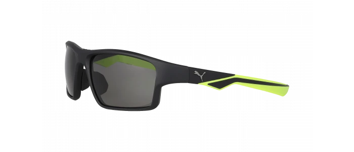 Découvrez les lunettes de soleil Puma - PU0437S pour un style sportif et tendance. Monture cerclée en plastique noir avec verres gris. Parfaites pour visages ronds ou ovales, avec branches antidérapantes pour un maintien optimal.