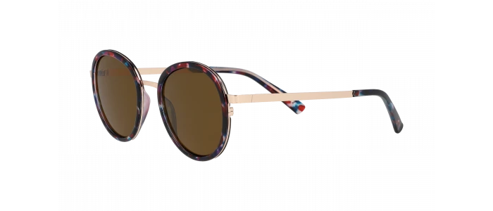 Osez mettre de la couleur dans votre vie en optant pour ces délicieuses lunettes de soleil si féminines. Le style rétro est au rendez-vous, avec la monture ronde aux larges verres bruns, et le joli cerclage en plastique bleu. Et pour une touche d'élégance, on aime le pont et les branches en métal doré.